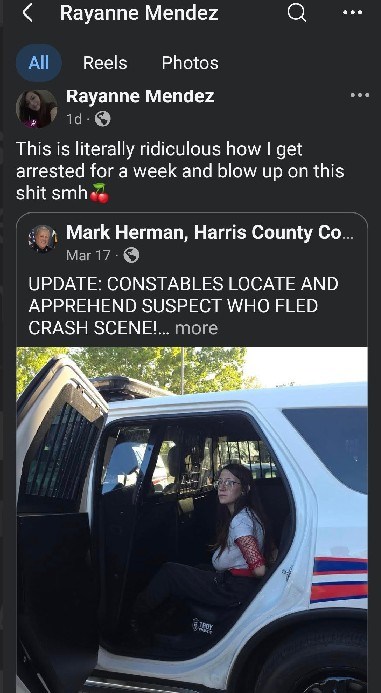 This is one of the times a girl reminds me why this blog exists. A viral post from the Houston Tips IG account went viral after men were thrilled of finding Rayanne Mendez as the busty girl arresed in a hit and run situation. (https://www.instagram.com/p/DWAYXiMjZg-/?igsh=Ymk0MG9jYmozYnQy&img_index=2)