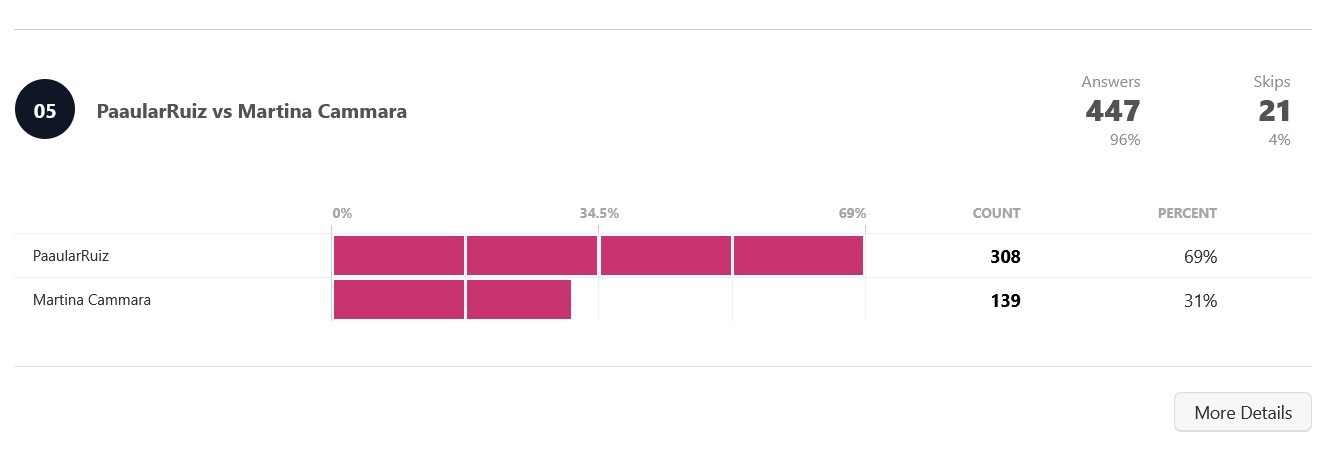 She defeated the ulta beaituful Martina Cammara by a landslide. This virtual unknown has crushed our hearts and made us melt our dicks thinking of her big juggs.