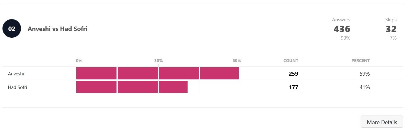 The Indian mega got a good fight by Had Sofri, but the sheer size of Anveshi’s mountains got her the ticket to the finals.