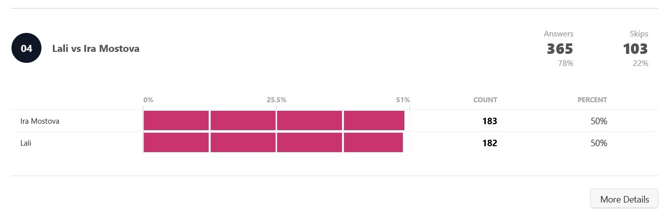 She and Lali ended in a draw, but I had the tie-breker vote. Lali may be busty, but she is repetitive and there seems to be something off in there. Ira is a more natural and exudes a nice personality which adds to the overall perception of her beauty. Irina is the girl on the featured image